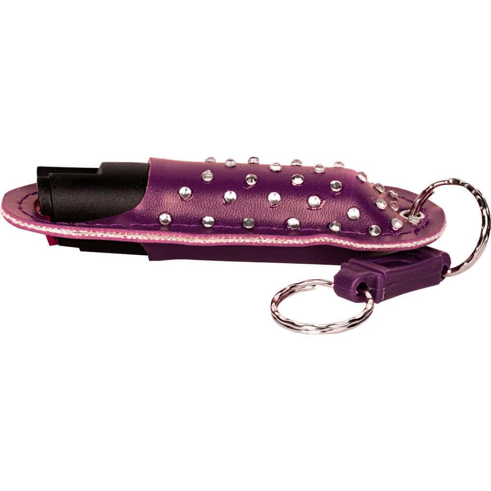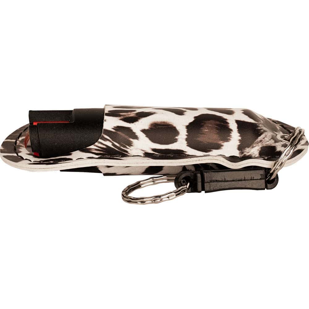 No — the formula, spray pattern, range, and safety mechanism are identical across all 11 color and finish options. The leatherette exterior color and any rhinestone or leopard print treatment are purely cosmetic. Choose whichever color you’ll actually carry consistently; a spray you carry regularly is more useful than one that stays in a drawer.